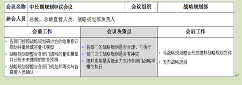 相对标准化、规范化的会议与报告体系的建立,有助于牵引会议方向,支持高层管理,保障了公司高层在战略管控工作中的职责得到充分发挥,更能在过程中最大限度地保障战略目标的落实与达成。