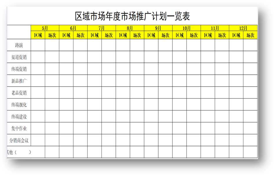 有了目标,并不意味着团队具有执行力与销售力,因为不把目标分解成计划,团队也就缺乏行动的依据,工作也就毫无章法可言;一般而言,营销层面的计划主要遵循“五到”原则,即目标分解成计划必须“到人、到产品、到区域、到渠道、到时间”。这种计划,严格意义上讲,是“结果型”计划;作为营销系统的管理,还必须要有与之匹配的“过程型计划”,即市场推广计划、新品上市计划、渠道开发计划、终端建设计划、团队建设计划、终端爆破计划、培训计划等。