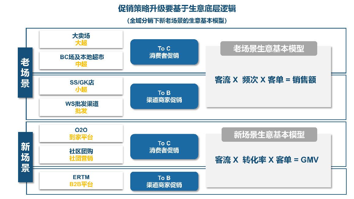 城市经理作为一线市场指挥官,面对多渠道时,一定要清楚促销背后销售的载体是谁,载体背后的生意逻辑是什么。只有知道不同场景下的生意模型,城市经理才能有的放矢,选择相应的促销形式,达成对应的目标。