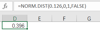 万家超市的管理人员第二步工作就是计算没卖出的概率下的密度函数fs(Z),也一样通过excel计算,其中0.126这个Z值已经在公式1计算出来了。最终得到的结果是0.396。