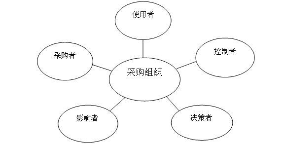 工业品的采购决策过程中往往有多方面、多层次的人员参与,而且他们的角色不同、地位不同,在决策中所起的作用也不同。一次较大宗的工业品的采购一般由以下五类人员组成,如图1-3所示。