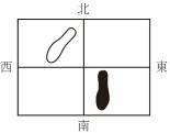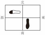 5.维持上式步型不变,以左实脚为轴心,带动腰胯及右脚跟内旋。由原来的面朝南,转至面朝正西。此时右脚尖点地,定势变为左实脚在后,右脚在前,面朝正西。