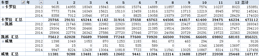卡罗拉虽然2014年进行了换代,但新老车型造型变化不大,体积变化不大,价格也变化不大,因此销量相对平稳。
