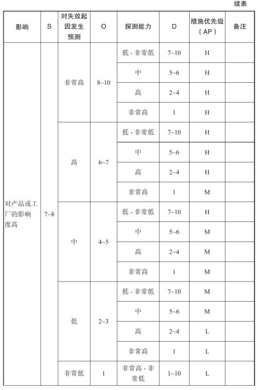 表7-5 PFMEA表格填写